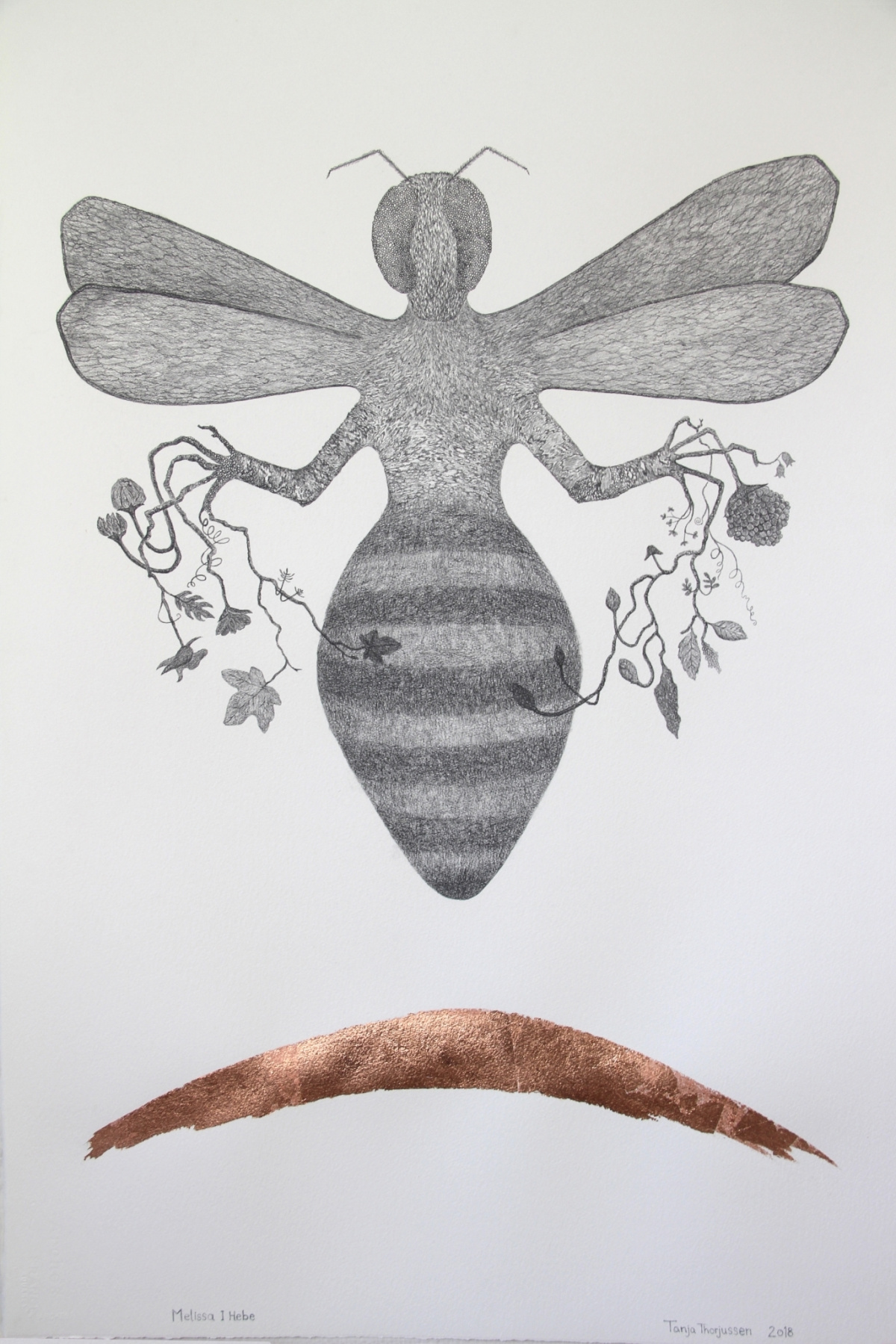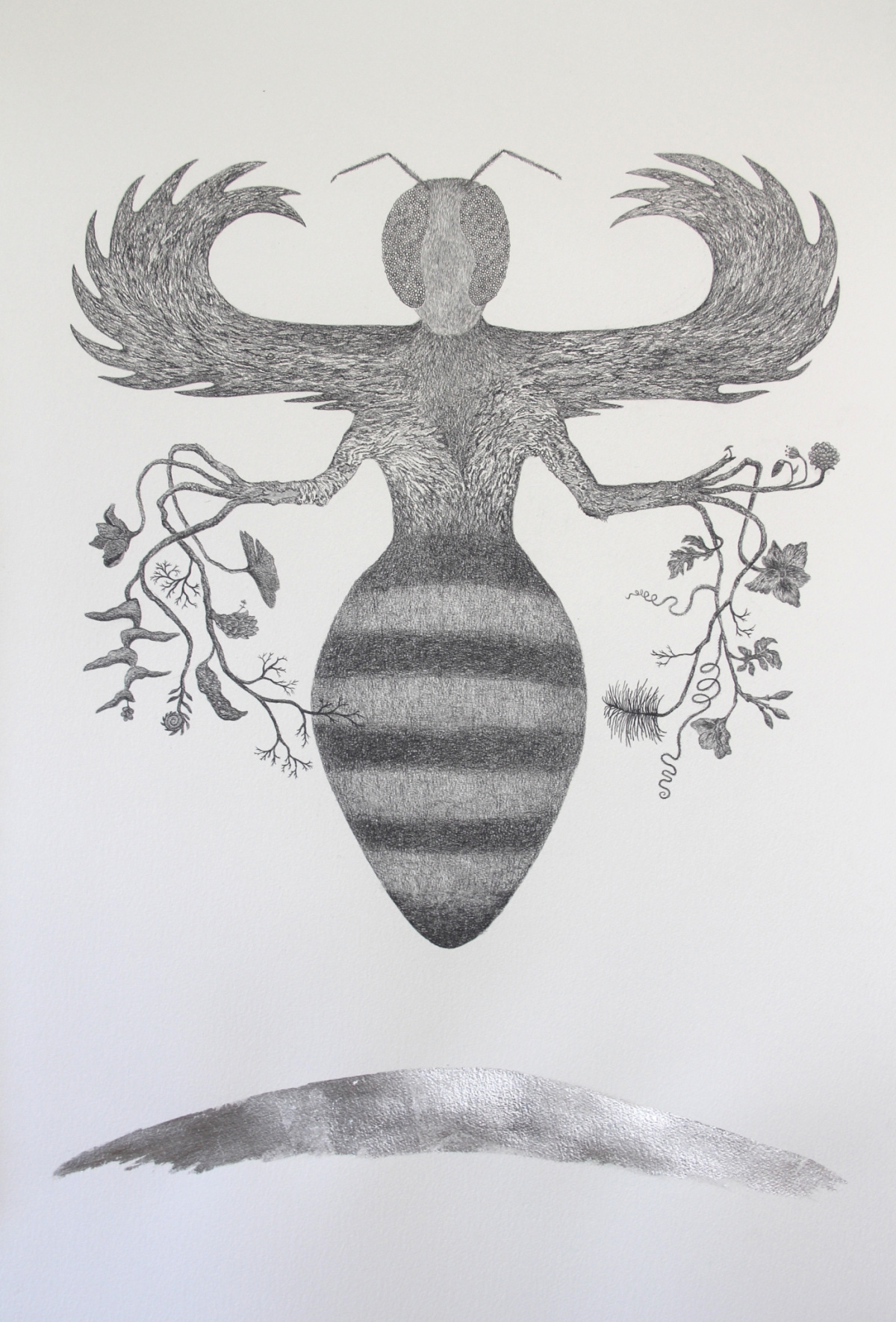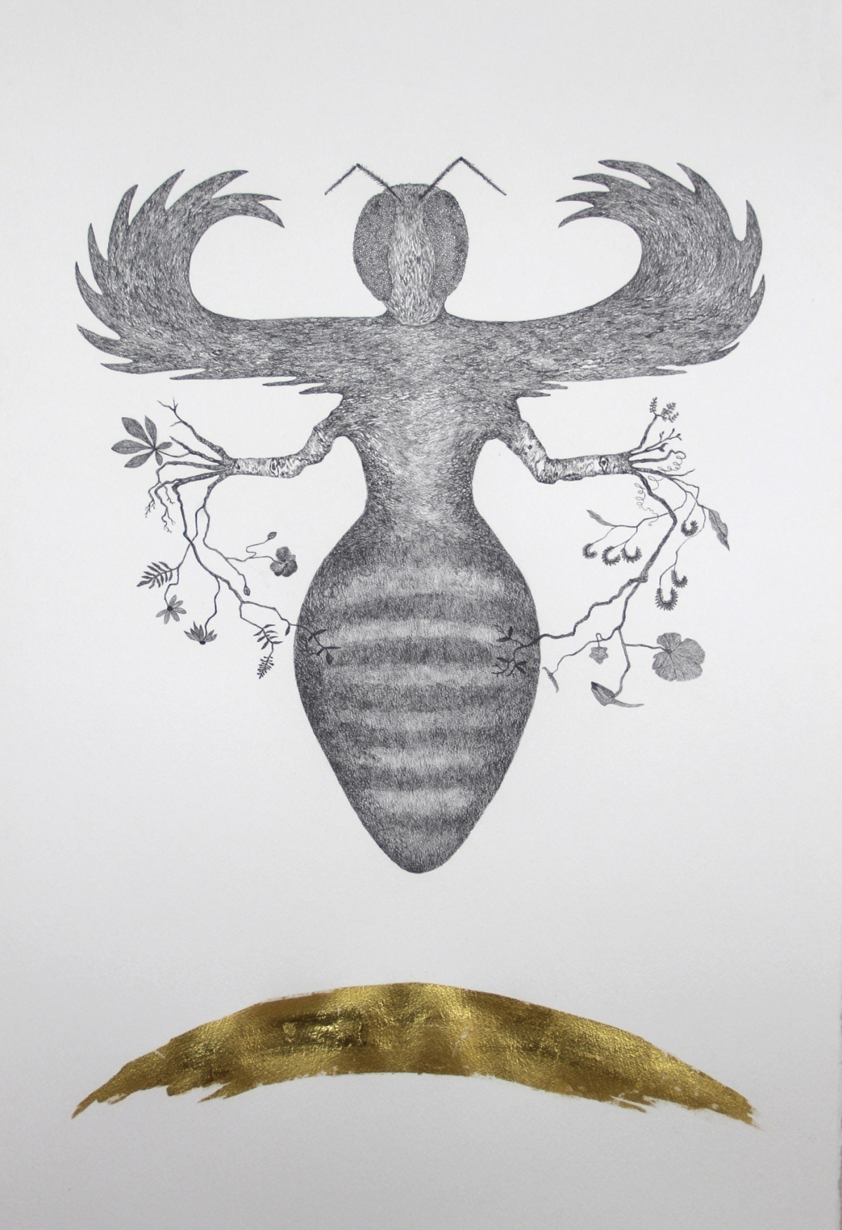 Gjennom sine rene, dekorative motiver skaper hun fantasifulle hybrider bestående av elementer fra ulike organismer og ulike verdener.