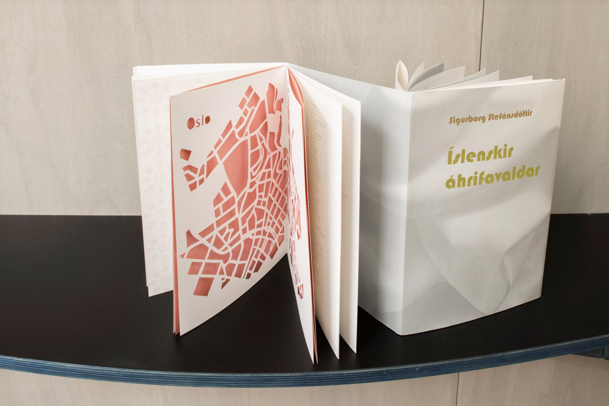 Utstillinga står på Entrée fram til nyåret – då tek bøkene vegen over havet til galleriet Íslensk Grafík i Reykjavik der ho opnar i juni 2022.